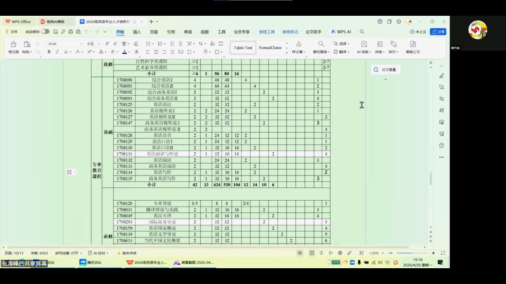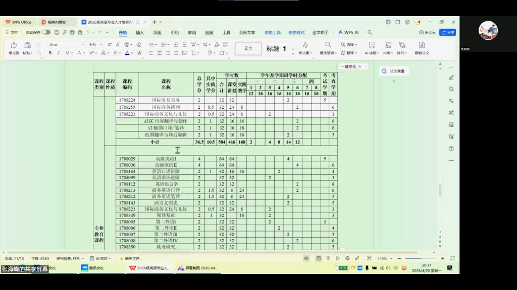 4月20日,公司英语专业通过腾讯会议平台线上召开2026级人才培养方案调研会。会议由英语专业负责人张海峰主持,英语专业全体教师参会。会议特别邀请牡丹江师范学院应用英语学院经理韩竹林教授和天津东方先科石油机械有限公司人力资源部经理张明明女士担任专家,共同为人才培养方案“把脉问诊”。